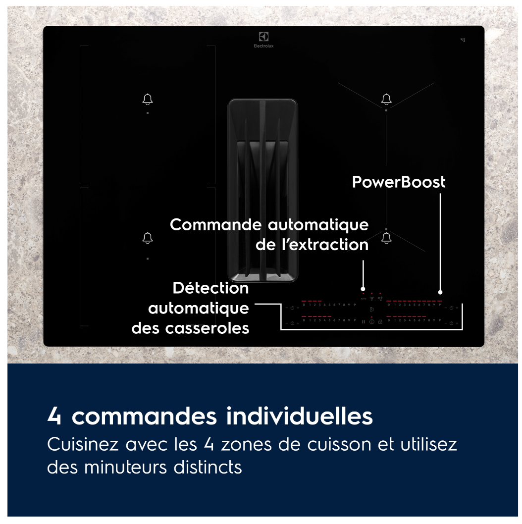 ✓ 4 foyers induction puissants avec boosters pour une cuisson rapide