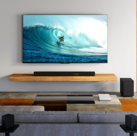 La Hisense AX5125H est une barre de son 5.1.2 canaux conçue pour une immersion cinéma à domicile. Elle est fournie avec un caisson de basses sans fil et des enceintes arrière sans fil, et intègre des haut-parleurs orientés vers le haut pour reproduire les effets en hauteur. Compatible Dolby Atmos et DTS:X, elle offre un son tridimensionnel enveloppant, idéal pour les films, séries et jeux vidéo. La connectique HDMI avec eARC permet de profiter des formats audio haute qualité directement depuis un téléviseur compatible. Grâce au Bluetooth, vous pouvez également diffuser votre musique sans fil depuis un smartphone ou une tablette. Ce produit est vendu par Electro World, votre spécialiste en électroménager.