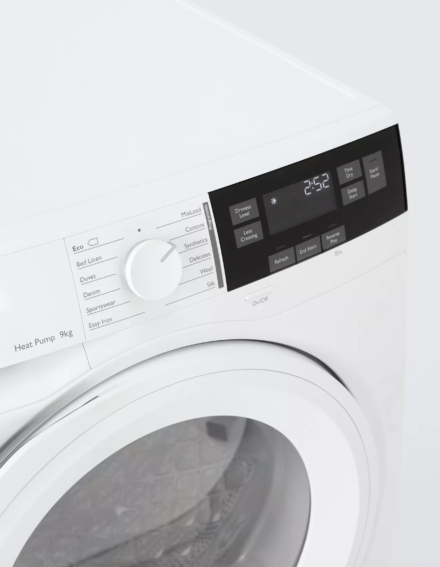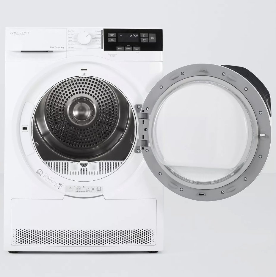 Le John Lewis JLTDH693 est un sèche-linge à pompe à chaleur de 9 kg conçu pour offrir un séchage efficace, économe en énergie et particulièrement doux pour les textiles. Grâce à la technologie Heat Pump, il sèche à basse température tout en réduisant la consommation électrique, ce qui lui permet d’atteindre la classe énergétique A+++. Son tambour inox grande capacité accueille facilement les linges volumineux tels que draps et couettes, tout en assurant une circulation d’air homogène pour un séchage parfait sans surchauffe. Le capteur d’humidité automatique ajuste la durée du cycle en temps réel pour éviter toute surconsommation et préserver les fibres. Ce modèle dispose d’un écran digital clair et intuitif permettant de choisir parmi une large gamme de programmes : coton, synthétiques, délicats, laine, chemises, sport, rapide, anti-froissage et linge de lit. L’option départ différé et le signal de fin de cycle apportent un confort d’utilisation optimal au quotidien. Le design sobre et élégant du JLTDH693 avec sa finition blanche brillante s’intègre harmonieusement dans tous les intérieurs, tandis que son fonctionnement silencieux en fait un appareil idéal pour une utilisation à toute heure. Ce produit est vendu par Electro World, votre spécialiste en électroménager, à prix imbattables toute l’année.