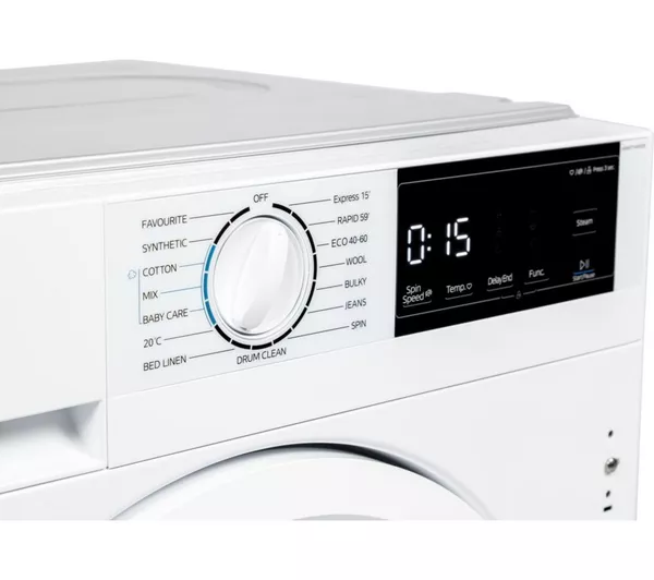 Le lave-linge encastrable Kenwood KIW714W25 est conçu pour s’intégrer parfaitement dans votre cuisine tout en offrant des performances efficaces. Avec une capacité de 7 kg et une vitesse d’essorage de 1400 tr/min, il convient parfaitement pour l’entretien du linge quotidien d’un foyer. Grâce au lavage guidé par capteurs, l’appareil adapte automatiquement le cycle en fonction de la charge de linge. Cela permet d’optimiser le lavage tout en améliorant l’efficacité énergétique, classée A. Pour les vêtements nécessitant un soin supplémentaire, la fonction vapeur aide à rafraîchir le linge et à améliorer les performances de nettoyage. De plus, les fonctions Prélavage et Rinçage supplémentaire assurent un nettoyage encore plus approfondi, même pour les vêtements très sales. Lorsque vous êtes pressé, le programme Express 15 minutes permet de laver rapidement une petite charge de linge. Enfin, la fonction départ différé jusqu’à 24 heures vous permet de programmer votre cycle selon votre emploi du temps. Ce produit est vendu par Electro World, votre spécialiste en électroménager.
