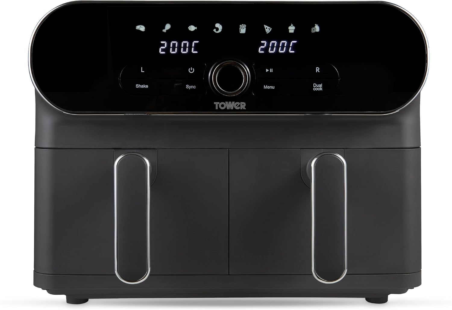 La Tower T17138 est une friteuse à air multifonction de 10,4 litres, conçue pour offrir une cuisson rapide, homogène et sans huile. Grâce à sa technologie exclusive Vortx Air Circulation, l’air chaud est diffusé uniformément à 360° dans la cavité, assurant des plats croustillants à l’extérieur et tendres à l’intérieur, tout en réduisant les graisses jusqu’à 99 %. Véritable appareil polyvalent, la T17138 combine 5 fonctions principales : frire, griller, rôtir, cuire et déshydrater. Son grand volume de 10,4 L permet de préparer des repas complets pour toute la famille, tandis que sa puissance de 2 000 W garantit des résultats rapides et uniformes. Son écran tactile LED digital propose 8 programmes automatiques, facilitant la préparation de frites, pizzas, viandes, poissons, légumes ou pâtisseries. La porte vitrée et l’éclairage intérieur offrent un contrôle visuel parfait de la cuisson sans interruption. Livrée avec tournebroche, panier rotatif, grilles et plateau récupérateur, cette friteuse multifonction est aussi pratique qu’économique. Ses éléments amovibles sont compatibles lave-vaisselle, pour un entretien simple et rapide. Son design noir élégant, associé à des finitions chromées, en fait un appareil aussi performant qu’esthétique. Ce produit est vendu par Electro World, votre spécialiste en électroménager, à prix imbattables toute l’année.